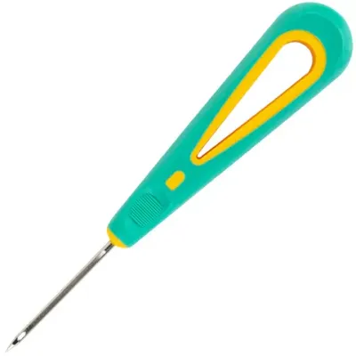 Игла с ушком диаметром 3 мм и длиной 4,5 см из стали с пластиковой цветной рукояткой. Шило обеспечивает прокалывание до 30 листов бумаги. Поставляется в блистере с подвесом.