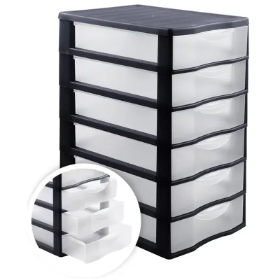 Универсальный бокс с выдвижными лотками для различных бытовых принадлежностей. Модульная система сборки позволяет собрать блок из различного количества лотков. На лотках имеется ограничитель, препятствующий выпадению из корпуса. 6 прозрачных лотков. Устойчивый, прочный корпус.
