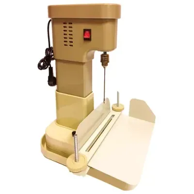 Новинка от известного производителя переплетчиков для ниточного скрепления документов Yunguang Machine Manufacturing Co.,Ltd. Автоматический переплетный станок Yunger m368 позволяет прошивать нитками стопку бумаг толщиной до 10 см. шириной до 32 см. Прошивка документов производится перьевым сверлом с пазом для вытягивания нити. Принцип работы: перьевое сверло проделывает отверстие в пачке бумаги, затем станок останавливает сверление и накидывает нить в паз сверла, после чего нить протягивается