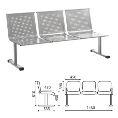 - Основные характеристики Кресло для посетителей трехсекционное "Стайл", цвет серебристый: Высота: 840, Глубина: 535, Ширина: 1430, Высота от пола до сиденья: 430. Полный список характеристик доступен на странице товара.