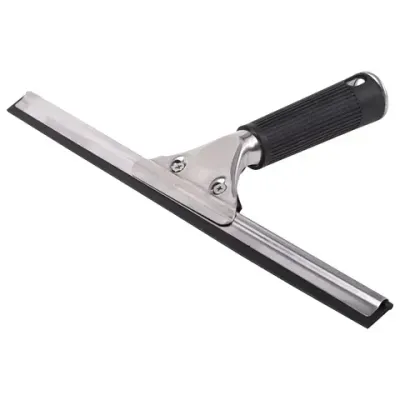 Лезвие плотно прилегает к поверхности и гарантирует отличный результат. Для удобства может использоваться в комплекте с телескопической ручкой (артикул 601514 и 601515). Основа изготовлена из металла, стяжка - из резины. Сочетает два цвета: черный и металлический. Длина рабочей части - 35 см.