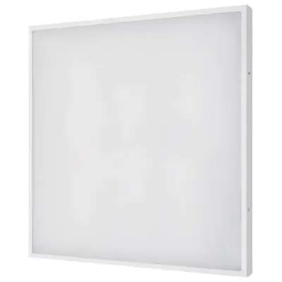 Светильник освещает пространство больших помещений со световым потоком 3200 Лм при цветовой температуре 4000 К. Имеет матовый тип рассеивателя. Размеры устройства – 595x595x40 мм. Источником света является светодиодная лента.