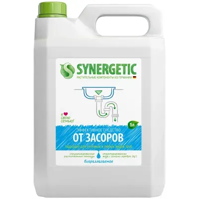 - Средство для прочистки канализационных труб с дезинфецирующим эффектом 5 л SYNERGETIC, биоразлагаемое, для всех видов труб и септиков, 108500 — это продукция бренда SYNERGETIC. В нашем магазине представлен широкий ассортимент товаров SYNERGETIC.