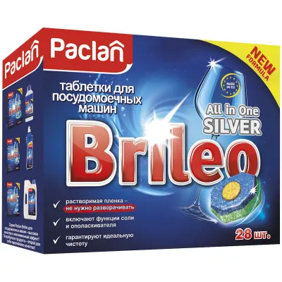 - Таблетки для посудомоечной машины Paclan "Brileo. All in one Silver", 28шт. — это продукция бренда Paclan. В нашем магазине представлен широкий ассортимент товаров Paclan.