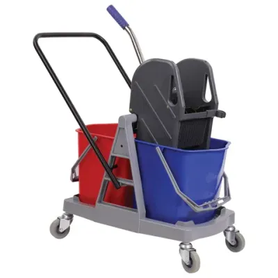 Тележка уборочная BRABIX, 2 съемных ведра 17 л, механический отжим, пластиковый каркас, 606660