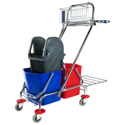 Тележка уборочная BRABIX, 2-съемных ведра по 15 л, отжим, корзина, держатель для мусорного мешка с поддерживающей платформой, 601500