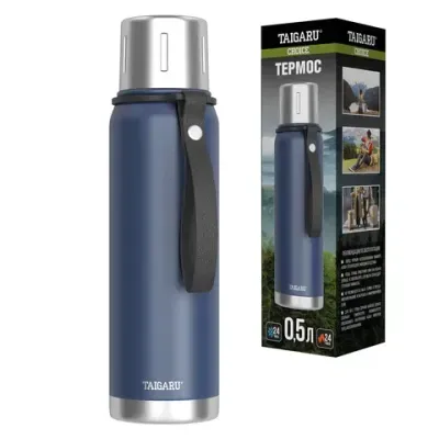 Термос 0,5 л TAIGARU (ТАЙГАРУ) CHOICE, нержавеющая сталь SUS316, крышка/кружка, ремешок, синий матовый, 700312