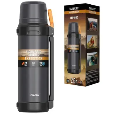 - Термос 2,5 л TAIGARU (ТАЙГАРУ) EXPEDITION, нержавеющая сталь SUS304, 2 кружки, 2 ручки, ситечко, графитовый, 700318 — это продукция бренда TAIGARU. В нашем магазине представлен широкий ассортимент товаров TAIGARU.