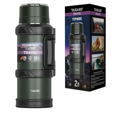- Термос 2 л TAIGARU (ТАЙГАРУ) TRAVEL, нержавеющая сталь SUS304, 2 кружки, скрытая ручка, ситечко, темно-зеленый, 700316 — это продукция бренда TAIGARU. В нашем магазине представлен широкий ассортимент товаров TAIGARU.