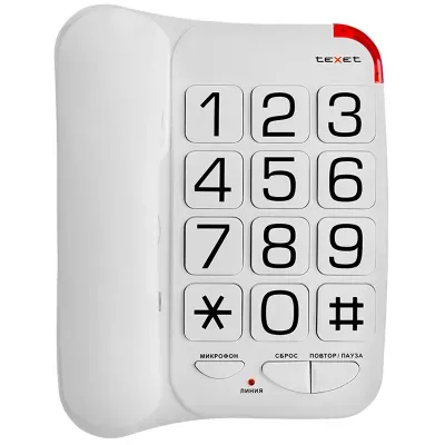 - Телефон проводной Texet ТХ-201, повторный набор, крупные клавиши, белый — какой бренд?
