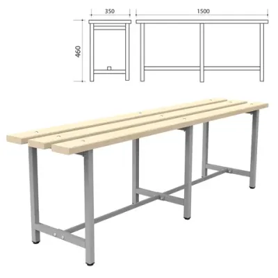 Скамья предназначена для эксплуатации в раздевалках спортивных учреждений, предприятий, офисов. Металлический каркас и доски из натуральной древесины обеспечивают надежность и долговечность эксплуатации. Простая сборка.