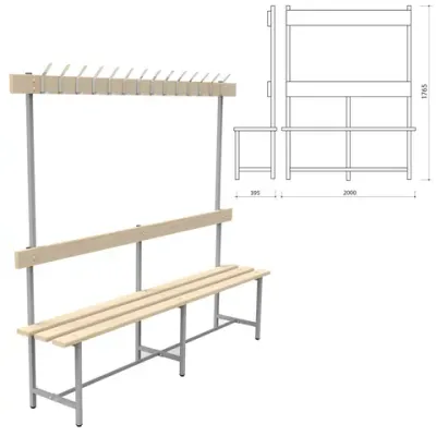 Скамья с вешалкой и спинкой предназначена для эксплуатации в раздевалках спортивных учреждений, предприятий, офисов. Металлический каркас и доски из натуральной древесины обеспечивают надежность и долговечность эксплуатации. Простая сборка.
