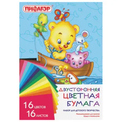 - Цена на Цветная бумага А4 2-сторонняя газетная, 16 листов, 16 цветов, на скобе, ПИФАГОР, 200х280 мм, "Рыбалка", 113542 составляет 33,9 рублей. При оптовом заказе цена от 27,67 рублей.