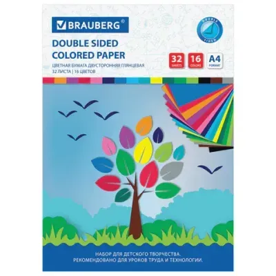 - Цветная бумага А4 2-сторонняя мелованная, 32 листа 16 цветов, на скобе, BRAUBERG, 200х280 мм, "Деревце", 113537 — это продукция бренда BRAUBERG. В нашем магазине представлен широкий ассортимент товаров BRAUBERG.