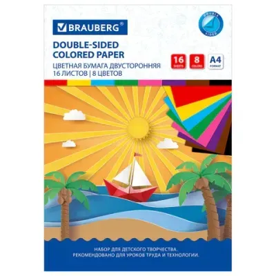 - Цветная бумага А4 2-сторонняя офсетная, 16 листов 8 цветов, на скобе, BRAUBERG, 200х275 мм, "Кораблик", 129925 — это продукция бренда BRAUBERG. В нашем магазине представлен широкий ассортимент товаров BRAUBERG.