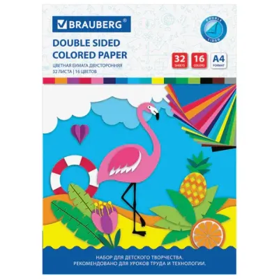- Цветная бумага А4 2-сторонняя офсетная, 32 листа 16 цветов, на скобе, BRAUBERG, 200х280 мм, "Фламинго", 113541 — это продукция бренда BRAUBERG. В нашем магазине представлен широкий ассортимент товаров BRAUBERG.