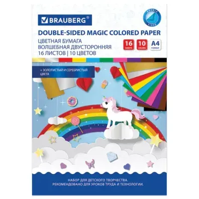- Цветная бумага А4 2-сторонняя офсетная ВОЛШЕБНАЯ, 16 листов 10 цветов, на скобе, BRAUBERG, 200х275 мм, "Единорог", 129922 — это продукция бренда BRAUBERG. В нашем магазине представлен широкий ассортимент товаров BRAUBERG.