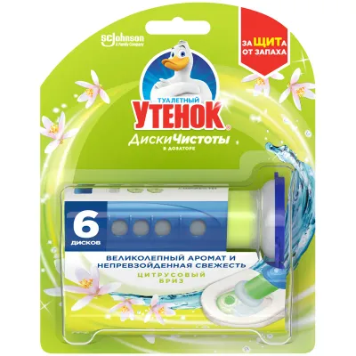 - Очиститель унитаза Туалетный утенок Диски чистоты в дозаторе "Цитрусовый бриз", 38г — это продукция бренда Туалетный Утенок. В нашем магазине представлен широкий ассортимент товаров Туалетный Утенок.