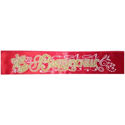 Лента выпускника в красном цвете выполнена из атласного материала и имеет размер 9,5*185см. Выбивная надпись 3D украшена блёстками и объемной обводкой. Ленты упакованы в пакет по 10 шт.