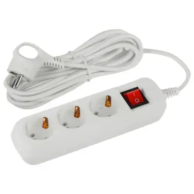 Сетевой удлинитель в пластиковом корпусе оснащен 3 розетками с заземлением. Корпус выполнен из негорючего пластика. На корпусе расположен выключатель. Толщина жил кабеля – 3x0,75 мм, длина кабеля – 5 м, номинальное напряжение – 220 Вт, максимальный ток нагрузки – 10 А, суммарная мощность нагрузки – 2200 Вт. Вся информация на сайте о товарах носит справочный характер и не является публичной офертой в соответствии с пунктом 2 статьи 437 ГК РФ. Производитель оставляет за собой право изменять хара