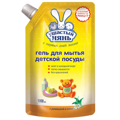 Средство для мытья детской посуды Ушастый нянь "Ромашка и алоэ", 1л, дой-пак