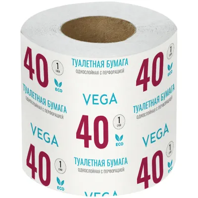 Бумага туалетная Vega, 1-слойная, 40м/рул., на втулке, с перф., серая