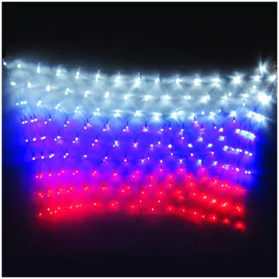 Электрогирлянда в виде сетки цвет - Триколор", имеет 260 ламп, 8 режимов, 2,5*08 м