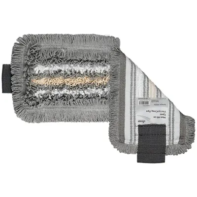 Уникальная насадка с 3 видами волокон: – полиэстер (серое волокно) – отлично оттирает и удерживает загрязнения; – микроволокно (белое волокно) – собирает самые мелкие частицы грязи, придает поверхности естественный блеск и не отставляет разводов; – вискоза (бежевое волокно) – впитывает много влаги и грязи. Каждая петля независимо прошита, благодаря чему насадка не распускается. Применяется для мытья всех типов напольных покрытий без особых требований. Прекрасно удаляет загрязнения со структурир