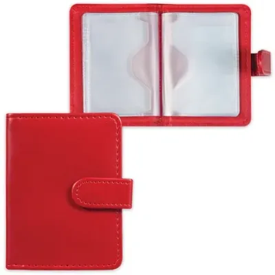 Мягкая обложка из кожзама с текстурой под гладкую кожу прошита по периметру. Подходит для тиснения фольгой и горячего тиснения. Содержит 12 карманов из мягкого ПВХ на 24 визитные карточки или 24 кредитные и дисконтные карты. Размер изделия - 110х70 мм.