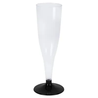 Бокал одноразовый 150 мл для шампанского "Флюте" пластиковый, черная низкая ножка, ВЗЛП, 1009П/Ч