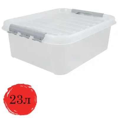 Ящик-контейнер 23 л с КРЫШКОЙ НА ЗАЩЕЛКАХ "ПРОФИ", 18х50х39 см, штабелируемый, ПРОЧНЫЙ, прозрачный, 437940000