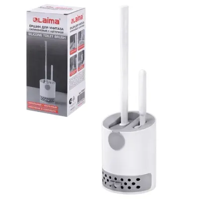 Ершик для унитаза силиконовый (плоский) + щеточка, напольный / настенное крепление, LAIMA, 700561