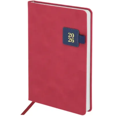 Внутренний блок включает 168 листов кремовой бумаги плотностью 70 г/м2. Каждая страничка имеет перфорированный угол. Благодаря стандартному формату А5 (138х213 мм) датированный ежедневник удобно использовать как в офисе, так и на выездных деловых встречах. Твердая обложка стилизована под текстурную кожу и имеет интересную деталь в виде нашивки контрастного цвета. Подходит для горячего тиснения. Дополнением является закладка-ляссе, с помощью которой при необходимости можно быстро открыть ежедне