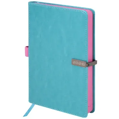 Внутренний блок включает 168 листов белой бумаги плотностью 70 г/м2. Каждая страничка имеет перфорированный угол. Благодаря стандартному формату А5 (138х213 мм) ежедневник удобно использовать как в офисе, так и на выездных деловых встречах. Твердая обложка стилизована под гладкую кожу бирюзового цвета. Материал обложки подходит для горячего тиснения. Для удобства пользования ежедневник снабжен держателем для ручки. Цветной срез в контраст обложки придает ежедневнику особый шарм. Дополнением яв