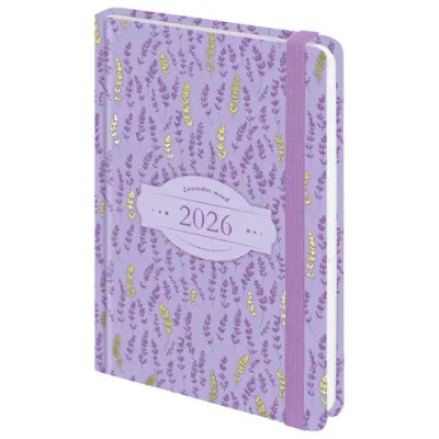 Ежедневник датированный 2026 с резинкой 145х203 мм, А5, BRAUBERG твердый, фольга, "Лаванда", 117344
