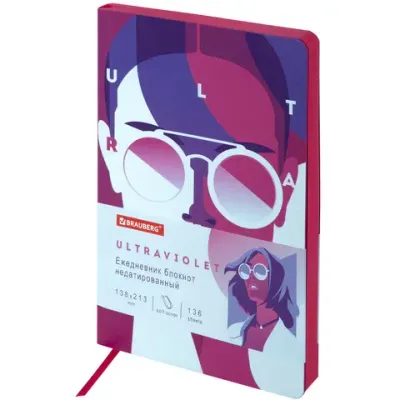 - Основные характеристики Ежедневник недатированный А5 (138х213 мм), BRAUBERG VISTA, под кожу, гибкий, 136 л., "Ultraviolet", 111988: Цвет внутреннего блока: белый, Дизайн: Ultraviolet, Цвет среза: красный, Тип ежедневника: недатированный. Полный список характеристик доступен на странице товара.