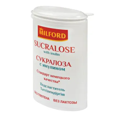 - Заменитель сахара MILFORD Сукралоза с инулином, 370 таблеток, пластиковая баночка с дозатором, 941201 — это продукция бренда MILFORD. В нашем магазине представлен широкий ассортимент товаров MILFORD.