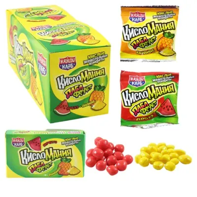 - Жевательные конфеты "Кисломания дабл фрукт" арбуз и ананас, 14 г, КАНДИ КЛАБ, CHW041 — это продукция бренда КАНДИ КЛАБ. В нашем магазине представлен широкий ассортимент товаров КАНДИ КЛАБ.