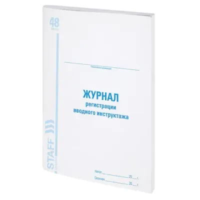 - Журнал регистрации вводного инструктажа, 48 л., картон, блок офсет, А4 200х290 мм, STAFF, 130083 — это продукция бренда STAFF. В нашем магазине представлен широкий ассортимент товаров STAFF.