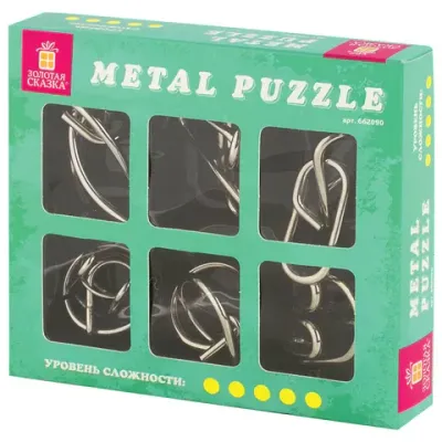 - Основные характеристики Головоломки металлические ЗОЛОТАЯ СКАЗКА (уровень сложности "ПРОФИ"), набор 6 штук, 662090: Материал: металл, Цвет: светло-серый, Тип товара: головоломка, Серия: Metal puzzle. Полный список характеристик доступен на странице товара.