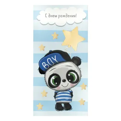 Конверт для денег "С ДНЁМ РОЖДЕНИЯ!", Панда, голубой, 166х82 мм, фольга, ЗОЛОТАЯ СКАЗКА, 113763