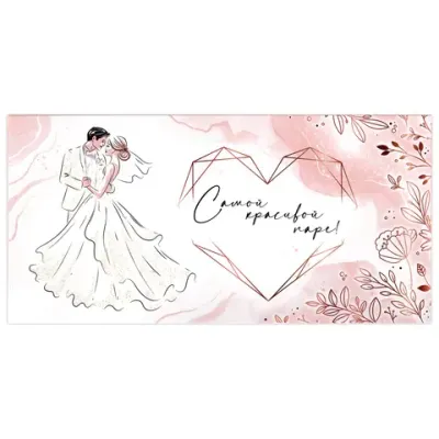 Конверт для денег "САМОЙ КРАСИВОЙ ПАРЕ", 166х82 мм, блестки, ЗОЛОТАЯ СКАЗКА, 113755